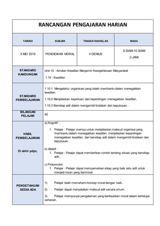 Contoh Rancangan Pengajaran Harian Prasekolah Pdf