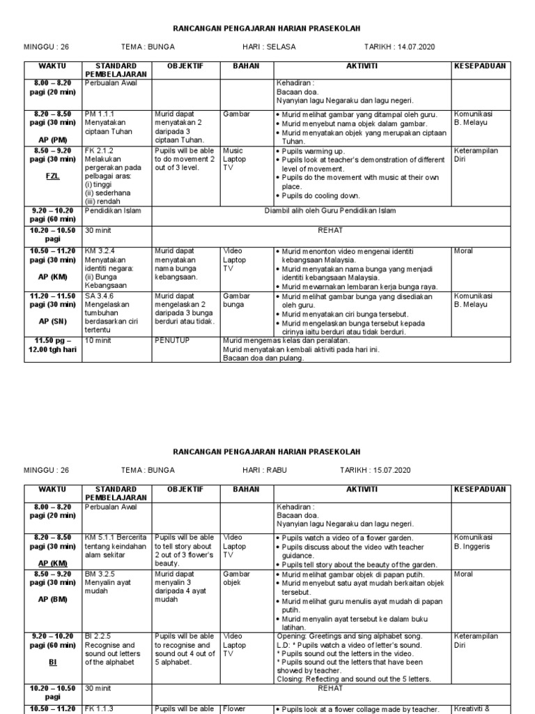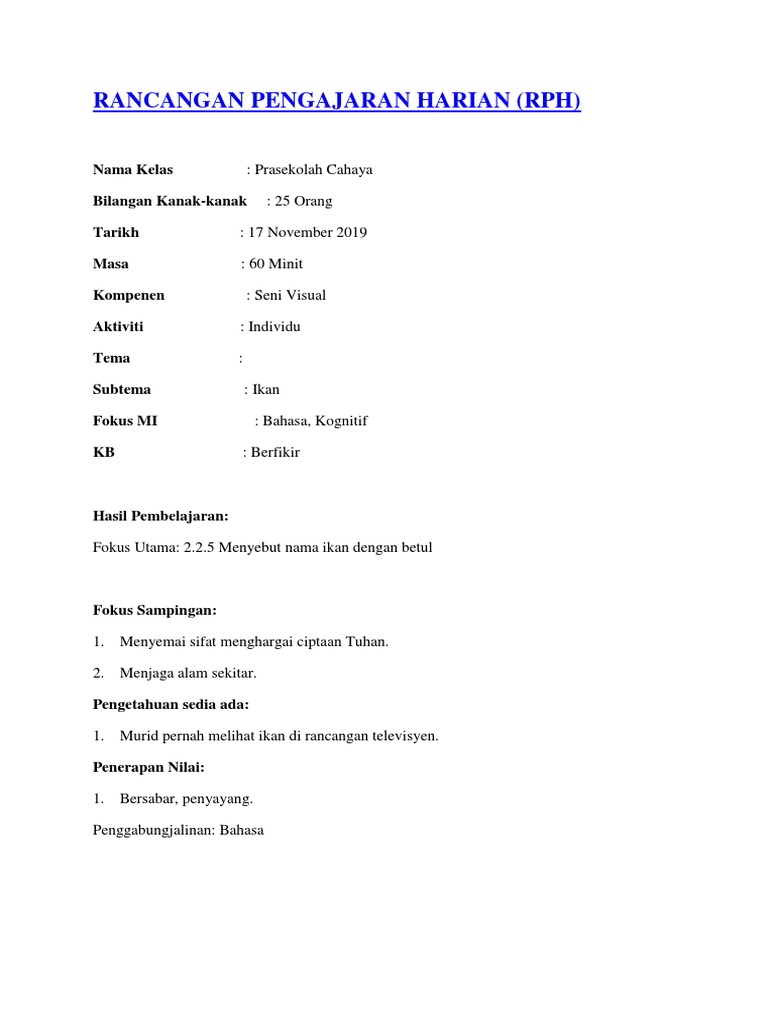 Rancangan Pengajaran Harian Prasekolah Pdf