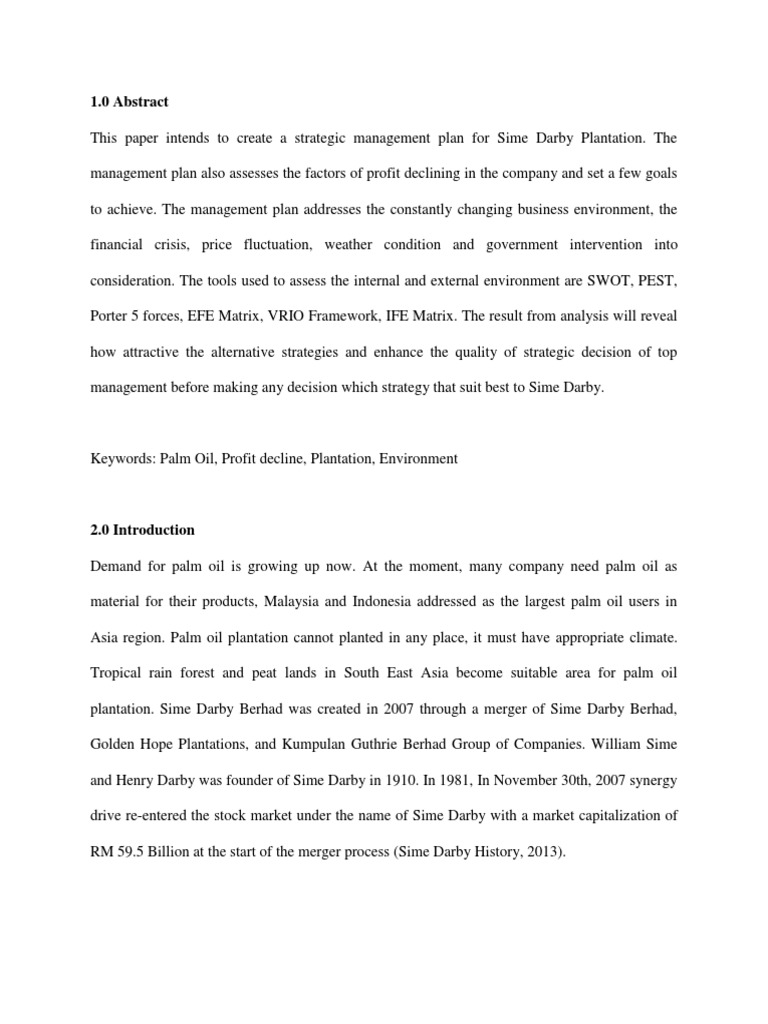 Introduction And Conclusion Docx 1 0 Introduction Sime Darby Plantation Sdp Sdn Bhd Is One Of The Worlds Biggest Palm Oil Producers As It Produces Course Hero